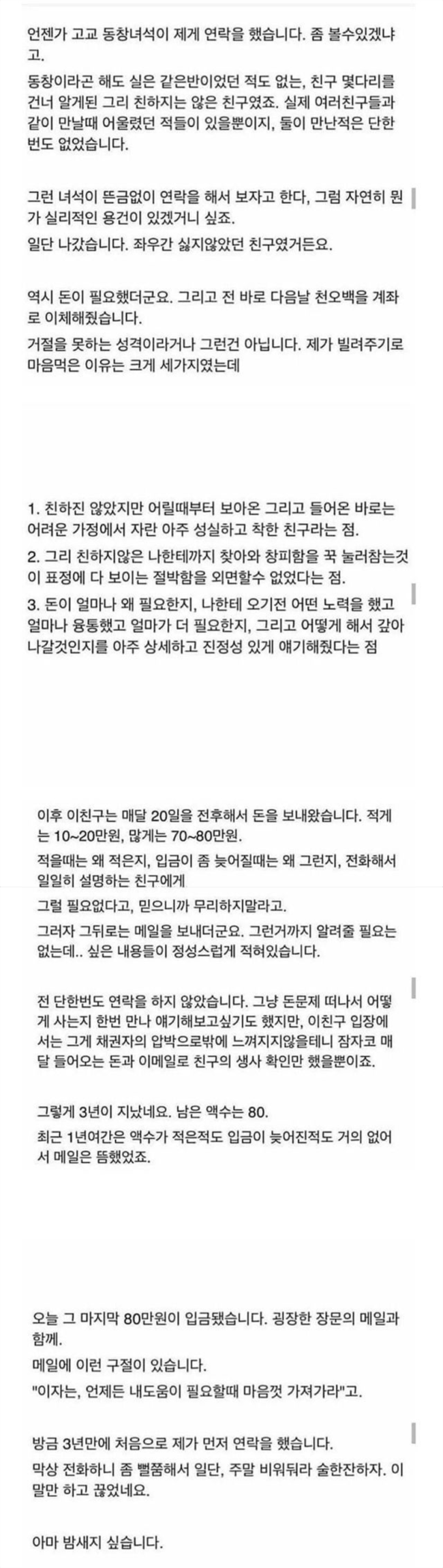 친하지 않은 친구에게 1500만 원 빌려줬더니…