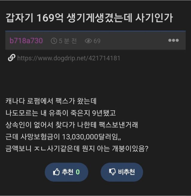 갑자기 169억을 상속받게된 남자