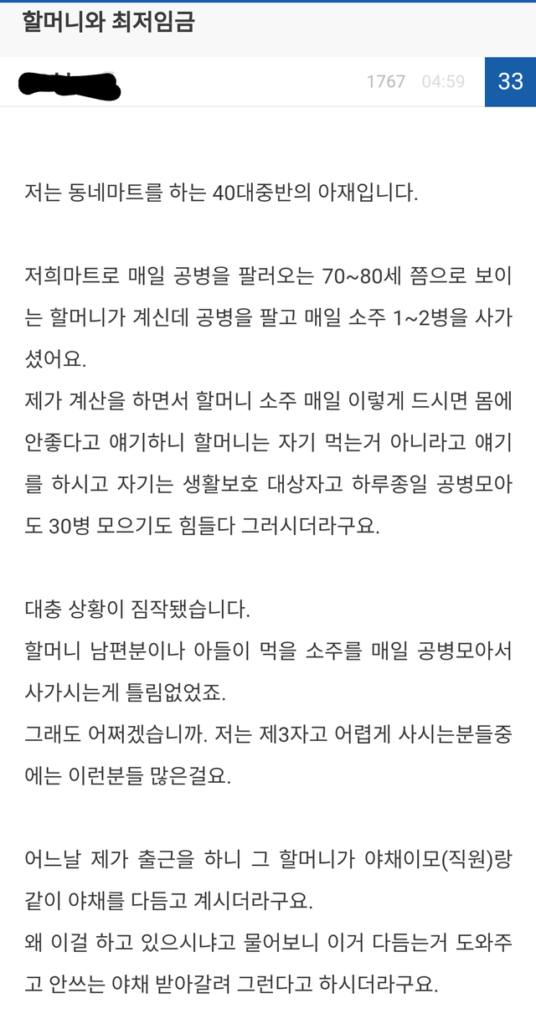 공병팔아 소주를 사가시던 할머니