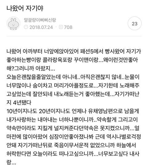 아내가 세상을 떠난 후 한결같이 글 쓰는 유채영 남편
