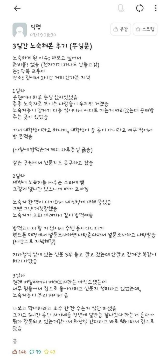 3일간 노숙해본 대학생