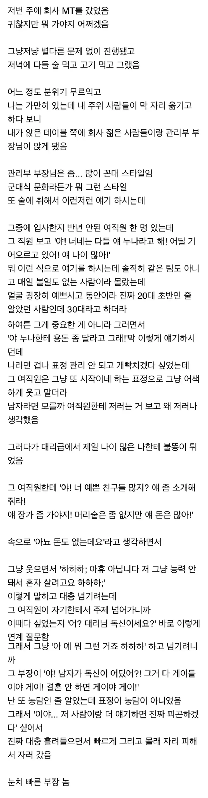 꼰대 부장과 회사 엠티 간 썰
