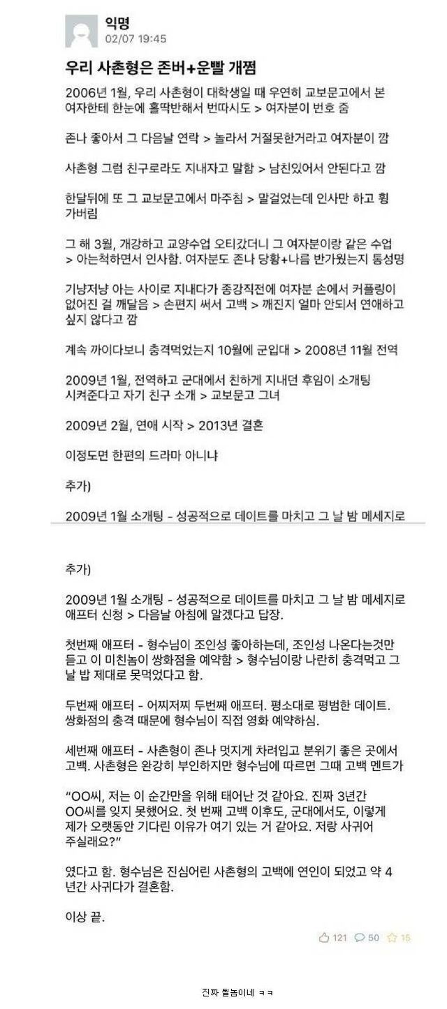 존버 + 운빨 개쩌는 사촌형 결혼 썰