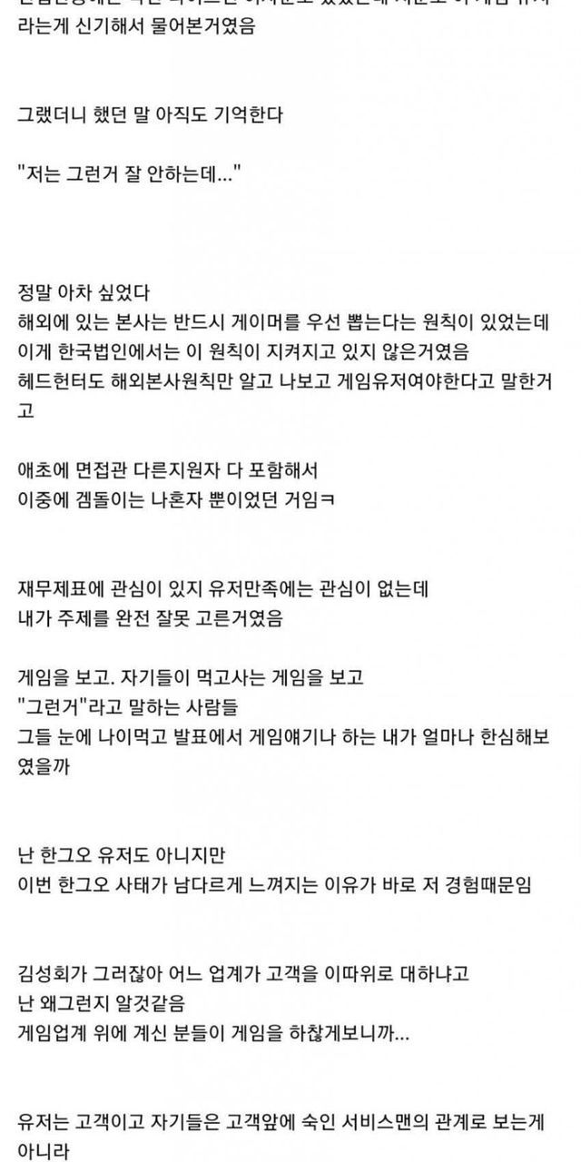 충격을 받았다는 게임회사 면접썰
