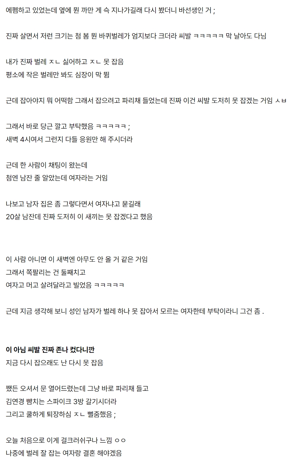새벽에 모르는 여자가 자취방 와서 바선생 잡아줌
