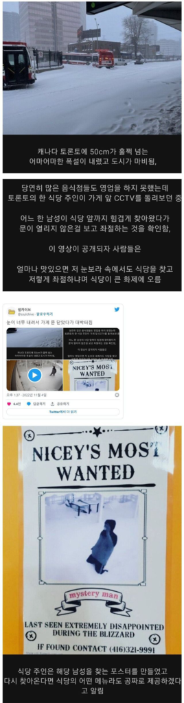 눈이 너무 내려서 가게 문 닫았다가 대박터짐