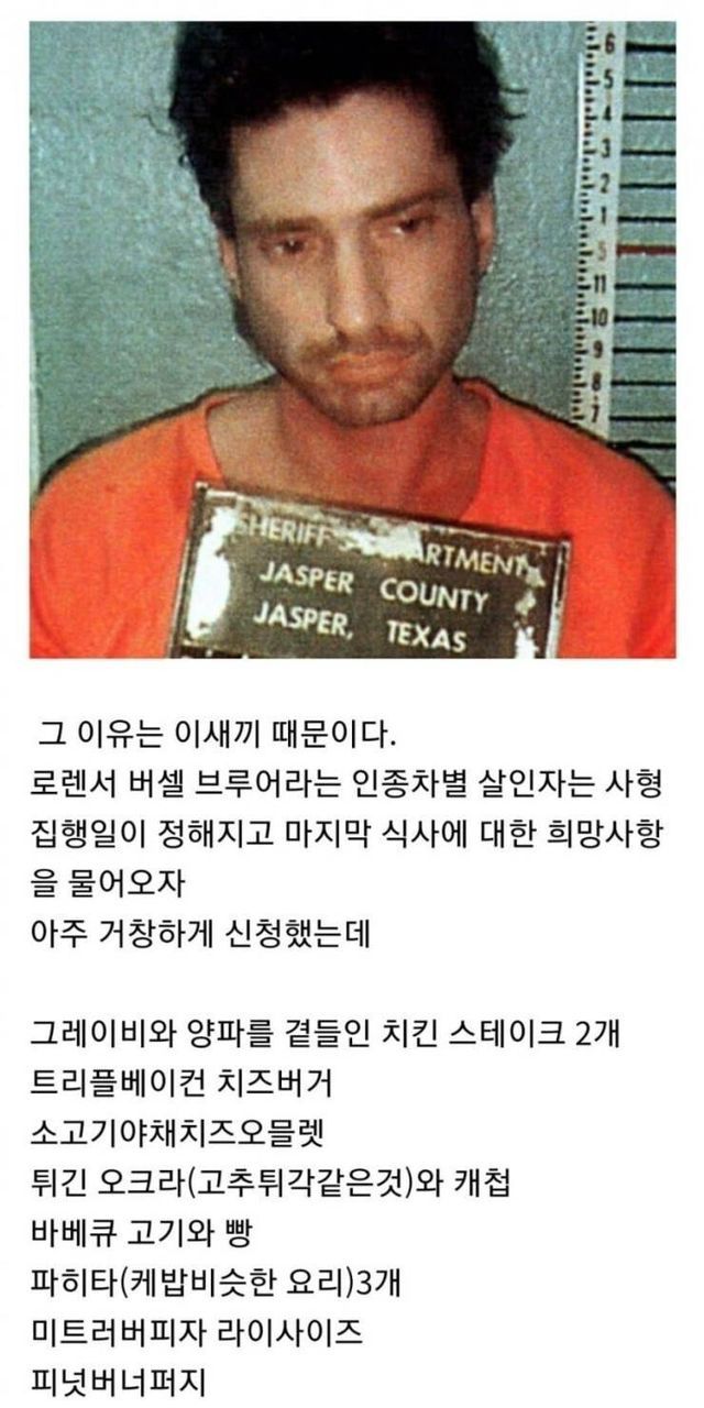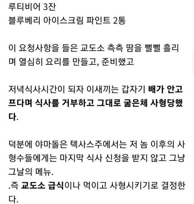 텍사스에서 사형 직전인 사형수한테 마지막 식사 제공 안 하는 이유