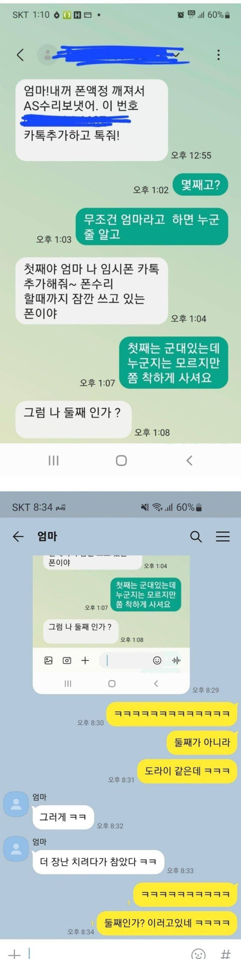 우리 엄마가 카톡으로 받은 피싱 인증샷