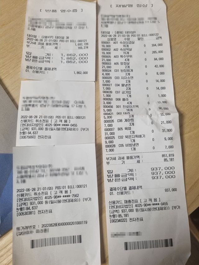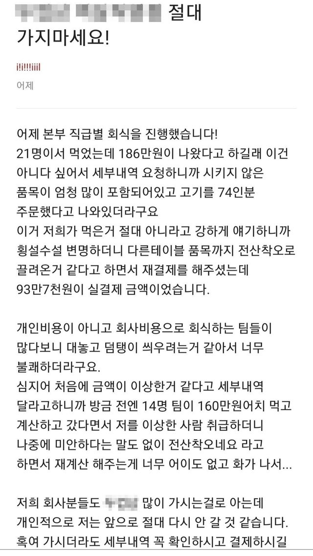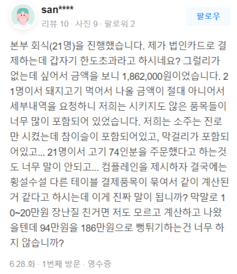 회식 도중 93만원이 186만원으로 변했다는 회사원