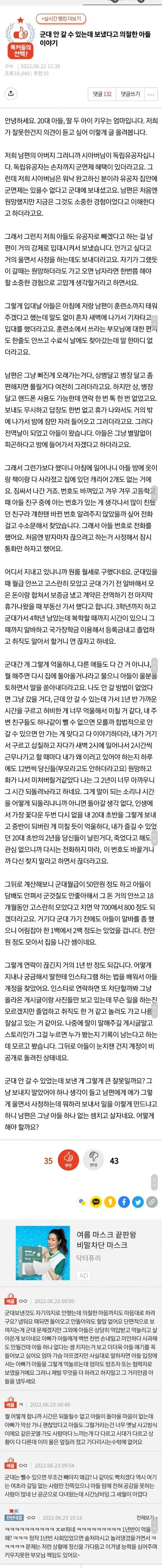 안 갈 수 있는 군대 보냈다고 아들이 부모랑 연끊음
