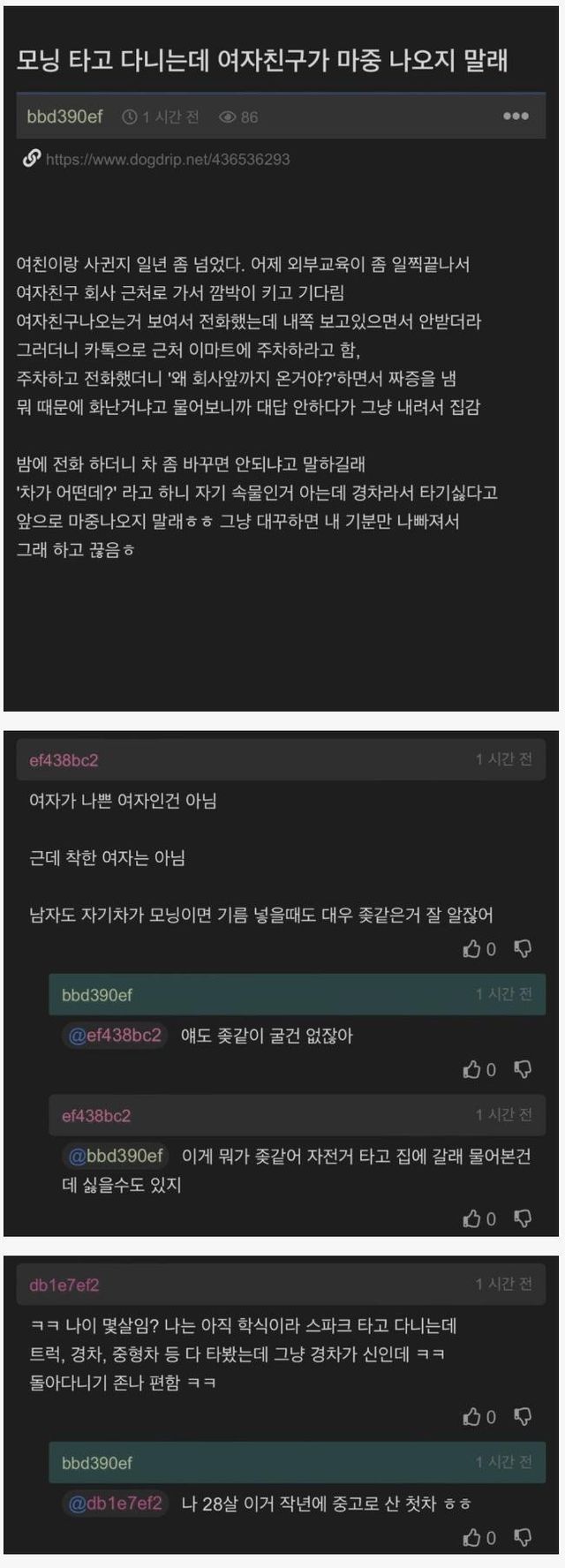 모팅 타고 다니는데 여친이 마중 나오지 말래…