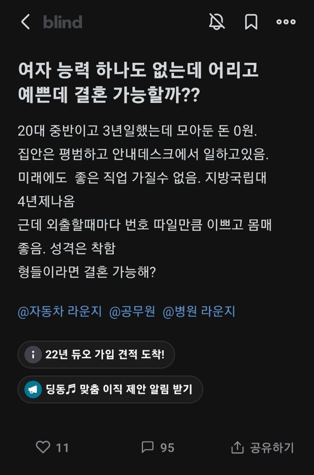 ?? : 아무리 예뻐도 능력 하나도 없는데 결혼 가능하겠니…
