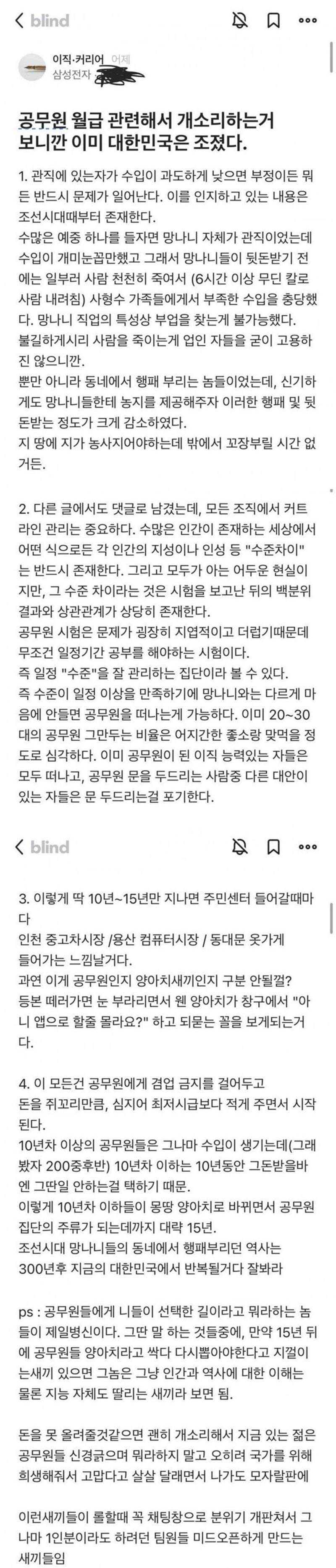 공무원 월급에 일침박는 삼성전자 직원.blind