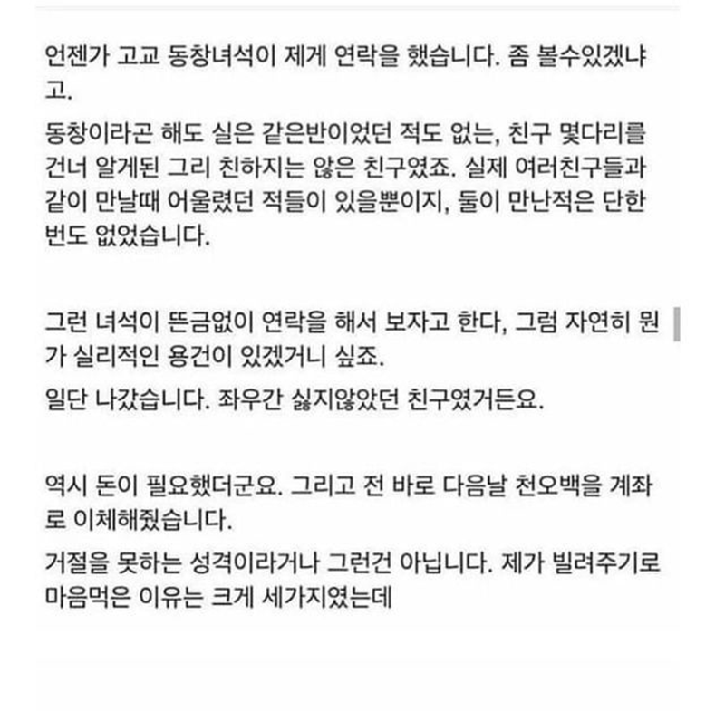 친하지 않은 친구에게 1500만 원 빌려줬더니…