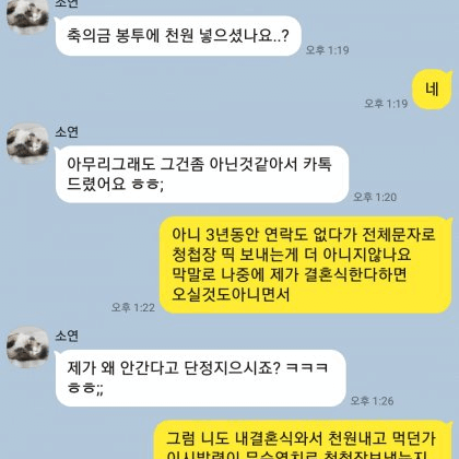[빡침] 축의금 봉투에 1,000원 넣고 카톡 받음